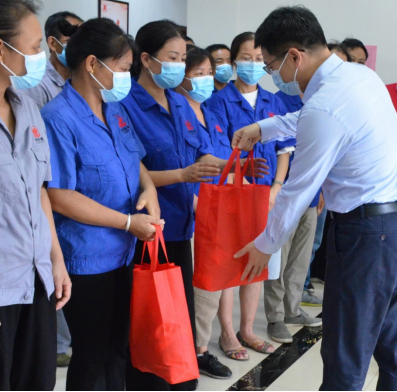 在慰問時,尹書記對我司在疫情與高溫的雙重考驗下,維持有條不紊地生產作業表示肯定,同時希望我司能夠繼續保持安全生產的良好勢頭,并叮囑一線員工作業時要注意身體,確保身心健康,時刻注意作業安全。當尹書記將夏季防暑降溫物品一一送到每位一線員工手中時,員工十分感動,整個現場更是響起熱烈的掌聲。