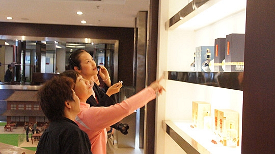 經(jīng)貿(mào)代表分團(tuán)一行首先來到公司文化展廳,在包含著四特悠久歷史和所處秀美山川環(huán)境的全景沙盤前詳細(xì)了解四特酒的發(fā)展沿革、地理環(huán)境及特香型白酒所獨(dú)有的釀造工藝。解說員生動(dòng)有趣的講解,展廳中雅致俊美的各類型展品,讓代表團(tuán)成員流連。“我們這次來南昌參加泛珠會,在宴會上喝的都是四特酒,問江西有什么特產(chǎn),朋友也推薦買四特酒,你們四特酒名頭不小啊。”葉局長笑著說道。